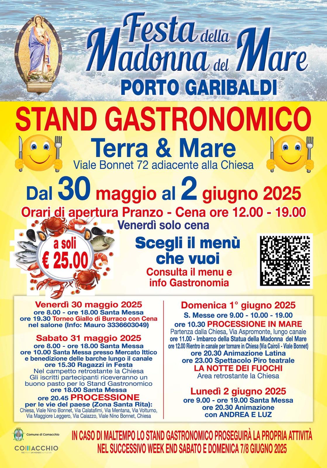 Menù stand gastronomico Festa Madonna del Mare 2025